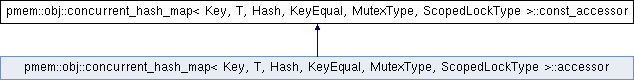 Inheritance diagram for pmem::obj::concurrent_hash_map< Key, T, Hash, KeyEqual, MutexType, ScopedLockType >::const_accessor: