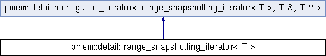 Public Member Functions inherited from pmem::detail::contiguous_iterator< range_snapshotting_iterator< T >, T &, T * > | |